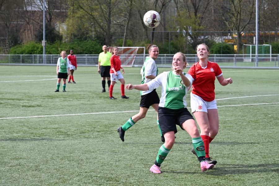 Zaterdag 4 april 2026: weinig competitievoetbal in het Paasweekeinde, maar ons Vrouwenteam had een goed lang weekend. Donderdag werd met 3-1 gewonnen bij Floreant en vandaag dik verdiend met 3-1 van het hoger geplaatste Woubrugge. Gouda steeg door een beter doelsaldo naar plek 6, over Olympia heen en ook de 5e plaats (nu Woubrugge) is binnen handbereik