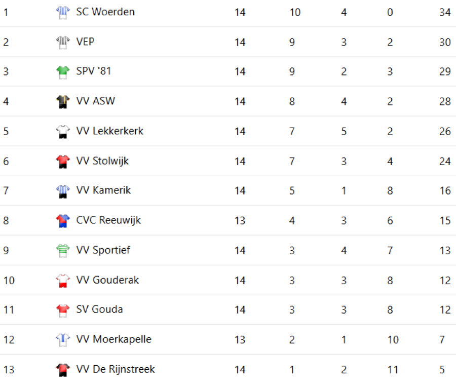 5e klasse, Poule B; stand per 14 februari 2026