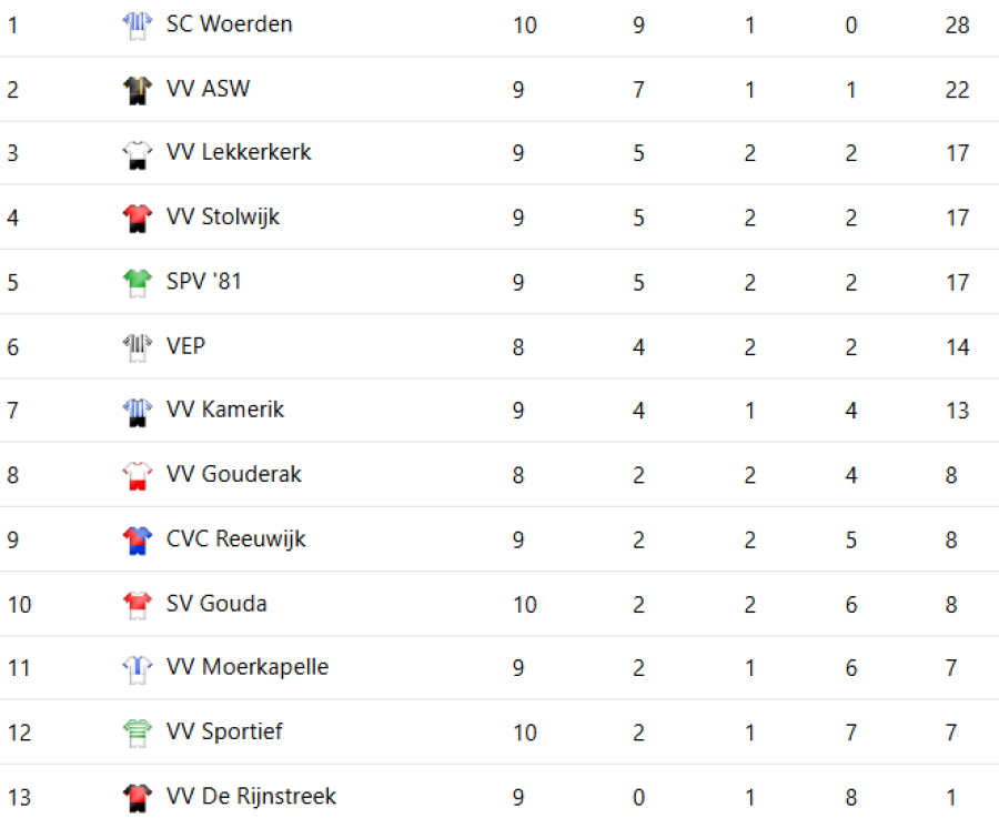 - Zaterdag 6 december 2025: Rijnstreek - Gouda (14.30 uur) en Be Fair VR1 - Gouda VR1 (14.30 uur)