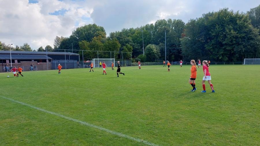 De KNVB besloot voor de start van de competitie meteen maar een affiche van formaat in te plannen. Met het nipte, maar o zo onfortuinlijk verlies van afgelopen seizoen nog vers in het geheugen, was het vooraf nagelbijten tussen en naast de lijnen… Eenmaal de bal aan het rollen gebracht, gingen “die van ons” echter in de hoogste versnelling door waar ze vorig jaar mee geëindigd waren: scoren! En hoe en hoe mooi! Met de nieuwe meisjes erbij, werden de touwen voor rust maar liefst 5x getroffen! Na rust drong Oudewater wel aan, maar enige ambities werden snel gesmoord toen al vrij snel de 0-6 binnen ging. Die score doet vermoeden dat het allemaal makkelijk ging. Maar met een ander middenveld, het debuut van de nieuwe meisjes die hun draai en positie nog moeten vinden, daardoor weer het gepuzzel voor de coaches Marijke en Krista…was dit een mooie teamprestatie! Er werd positief gecoacht, er was ruimte en begrip voor als het even niet lekker liep. En in zulke gevallen werd er nog eens extra voor elkaar geknokt! En zo werd het uiteindelijk 0-6. Het was overigens een vertrouwd gezicht om Guusje tussen de palen te hebben vanwege de nog geblesseerde Senna. Dankjewel Guusje en beterschap Senna! Goals waren er van Loïs (4x) en Speedy Sietske (2x). Drie belangrijke punten naar Gouda en het vizier op De Meern volgende week thuis. Maar nu eerst nog even nagenieten!