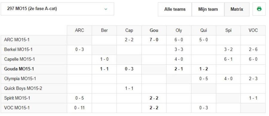 UITSLAGEN MATRIX (Hoodsklasse):