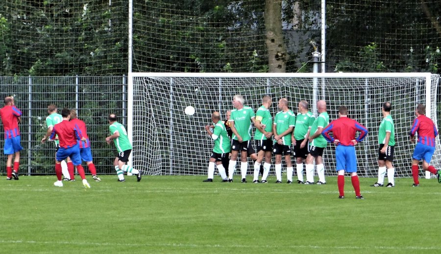 De nieuwe opzet van ons jaarlijkse Veteranentoernooi was goed bevallen (starten op zaterdag om 16.30 uur) en dus hadden organisatoren Paul Huurdeman en René Koetveld hier weer op doorgeborduurd. Alhoewel het niet echt zomerweer was, was het tussen de kleine buitjes door prima te doen en dit weer brengt wel wat extra zuurstof in de lucht en dat konden de mannen natuurlijk goed gebruiken. Eerst werd er in twee poultjes van 4 teams gespeeld, daarna kruisfinales en tenslotte de finales, zodat er een mooie ranglijst ontstond (zie onderaan).