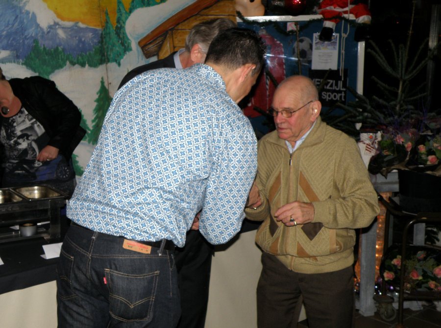 Ons lid Johannes Jacobus Joziasse, roepnaam Joop, is overleden op dinsdag 21 februari 2017 in de leeftijd van 80 jaar. Tot voor enkele jaren was Joop op zaterdagen en zondagen te vinden op ons veld, tot hij in 2013 hartproblemen kreeg. Daarna heeft Joop het rustig aan gedaan. In zijn actieve voetbaljaren was hij een snelle rechtsbuiten, bijnaam JéJé, in onze laagste teams. Daarna bleef hij zijn cluppie trouw volgen en hij was in 2012 vijftig jaar lid (zie foto onder, rechts). Joop was een kleine rustige man met een groot hart. Op maandag 27 februari 2017 vindt de crematieplechtigheid plaats in de aula van de IJsselhof om 13.30 uur. Wij wensen zijn zus M.M. Speckman- Joziasse alle sterkte toe met dit verlies. Moge Joop rusten in vrede.
