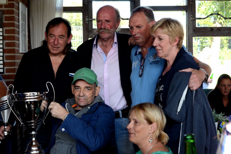 Hierna was het moment om me te richten tot Claus, het liefste broertje van mijn allerbeste vriend, en zijn naasten en te proberen het gevoel wat bij echt alle aanwezigen heerste zo goed mogelijk onder woorden te brengen en ook nog eens over te brengen, het liefst zo kort mogelijk (op verzoek van Claus overigens) . In de microfoon pratend en de kantine inkijkend vond ik (gezien de reacties) godzijdank de juiste woorden, beloofde Claus welgemeend de wisseltrofee op het mooiste plekje in onze kantine te zetten en beloofde namens mij en alle aanwezigen tenslotte Claus en zijn naasten de nodige steun met de afsluitende woorden recht vanuit het hart : “you will never walk alone”!
