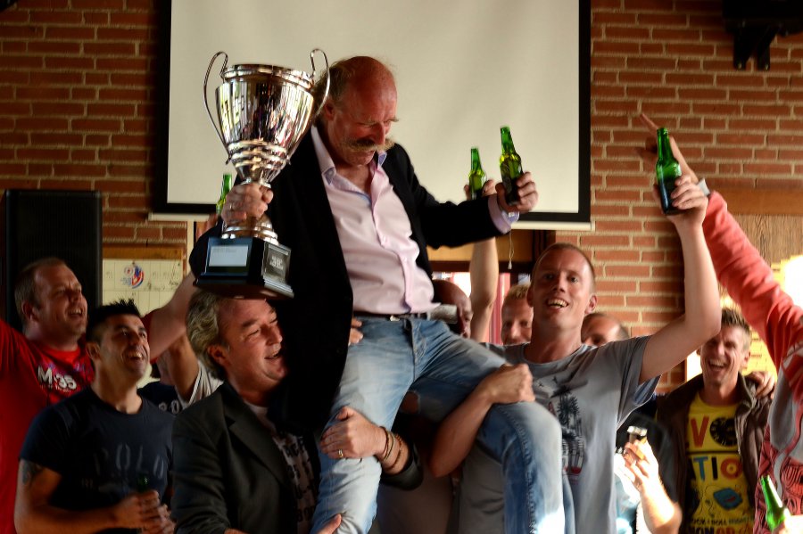 Onder toeziend oog van Claus, Roberta, hun kinderen en kleinkinderen, familie en naasten werd begonnen aan de prijsuitreiking waar Sv Oosterheem natuurlijk ruim aan bod zou komen. Op verzoek van onze behoorlijk ge-emotioneerde aanvoerder Fredje mocht ik de prijzen in ontvangst nemen en te doen waar Fred normaal zo goed in is, een woord van dank uitspreken aan de organisatie gevolgd door een kleine speech (met vaak een boodschap).