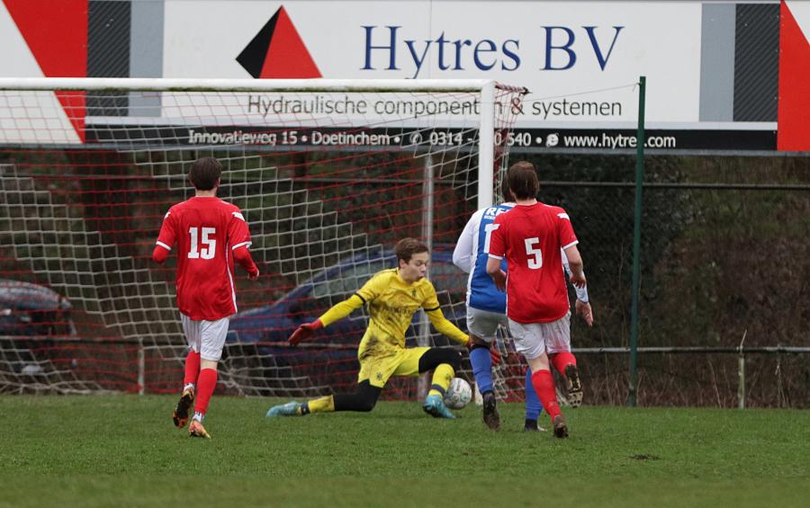 In de 11e minuut kreeg Jelte Bijsterbosch van JO19-1, voor het eerst in de basis gestart, een enorme kans de score voor Gouda te openen, maar invaller keeper Jansen bracht uitstekend redding.
