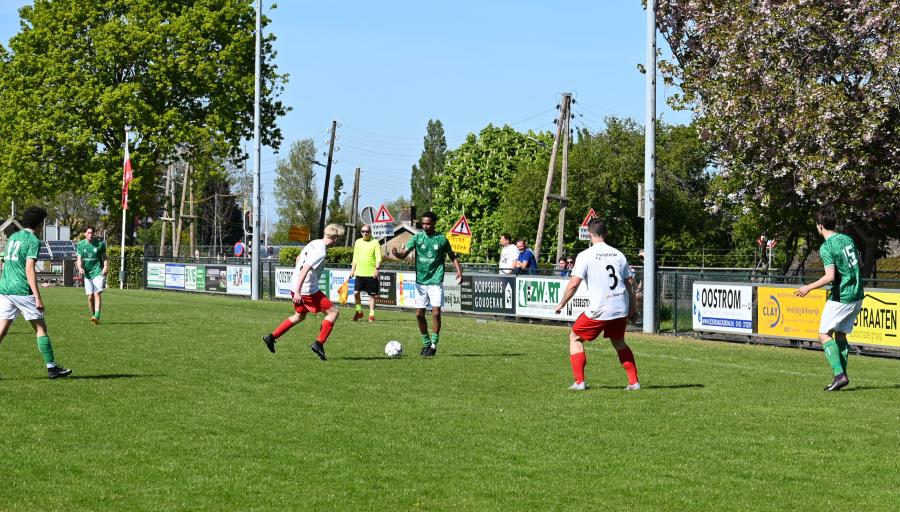 In de laatste minuut maakte Farhan op links de bal vrij, speelde op rechts de ingevallen Jelte Bijsterbosch aan, die zich vrij maakte, het leer terugtrok richting Farhan, maar een verdediger trachtte de bal te onderscheppen en dat lukte maar schoot daarbij wel hard in eigen doel, 0-3 en wedstrijd beslist.