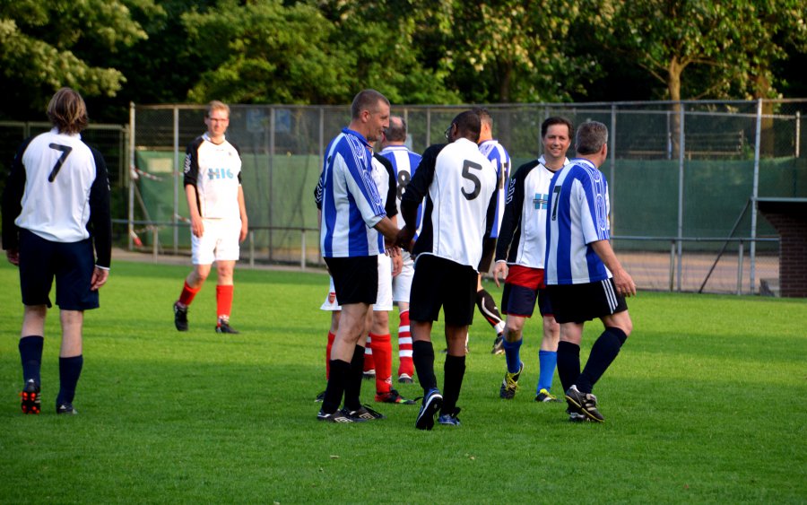 Met een leuk potje voetbal, waarin vooral na rust de turbo er op ging, werd het actieve gedeelte van het seizoen 2015-2016 afgesloten., Na twee keer een half uur zonder scheidsrechter, won het wit-zwarte team met 3-2, na bij rust met 2-1 achter gestaan te hebben.