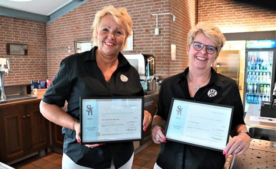 Zaterdag 20 augustus 2022. Na het tijdperk Van Bruggen/Pina diende ook de nieuwe kantinecommissie over de verplichte Horeca papieren te beschikken. Enigszins uitgesteld door de corona-pandemie, is het nu zover, de dames Sandra de Wit en Agatha Heuvelman zijn de trotse bezitters van het vereiste Horeca diploma. Gefeliciteerd dames en Gouda kan zo weer jaren vooruit!