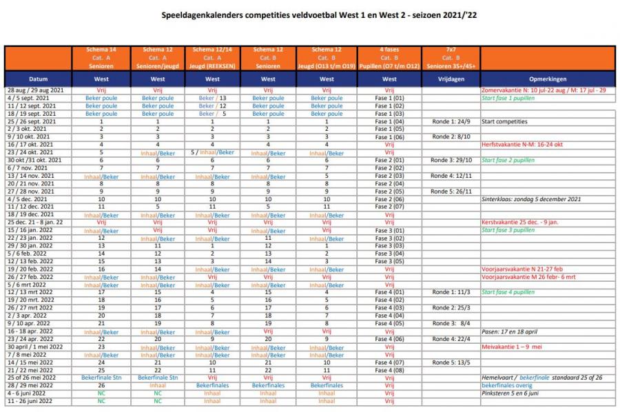 De KNVB heeft vandaag de speeldagen kalender 2021 - 2022 bekend gemaakt. Hopelijk kunnen we dan weer een heel seizoen spelen.