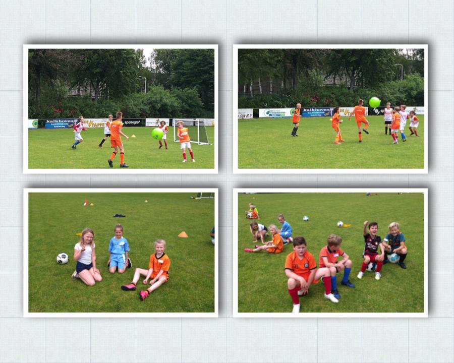 Acht leuke voetbalspellen waren in alle vroegte uitgezet op het hoofdveld en zorgden voor geweldig speelplezier. Hardschieten, poppen-schieten, siamees voetbal, skippy voetbal, voetbal-sjoelen, voetbaldans, gaten schieten en voetbaltikkertje, allemaal spelen waarin iedereen de energie flink op kon loslaten. Het programma werd door een enthousiaste host per aan elkaar gepraat. Halverwege de ochtend was er even gelegenheid om bij te komen met een drankje en oranje versnapering. Ook de enkele toeschouwers werden niet vergeten. Na afloop kregen de kinderen een echt voetbaldiploma met daarop onze Oranje-helden en een bijpassend oranje gekleurd verfrissend raketje. Het was voor iedereen die aanwezig was een super geslaagde ochtend!