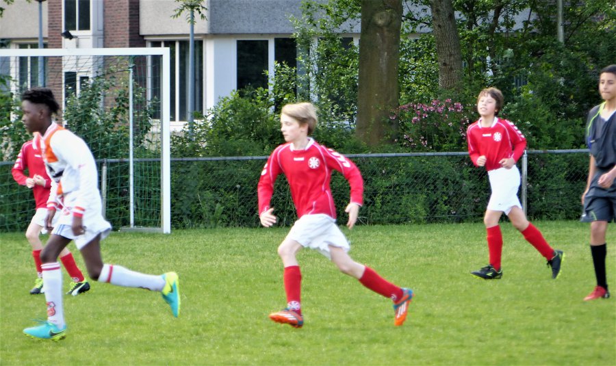 De jongens gingen na de groepsfoto naar Reeuwijk om zelf in een toernooi te spelen, de meiden floten 's middags vrolijk verder en namen samen een poule van ons toernooi voor hun rekening.