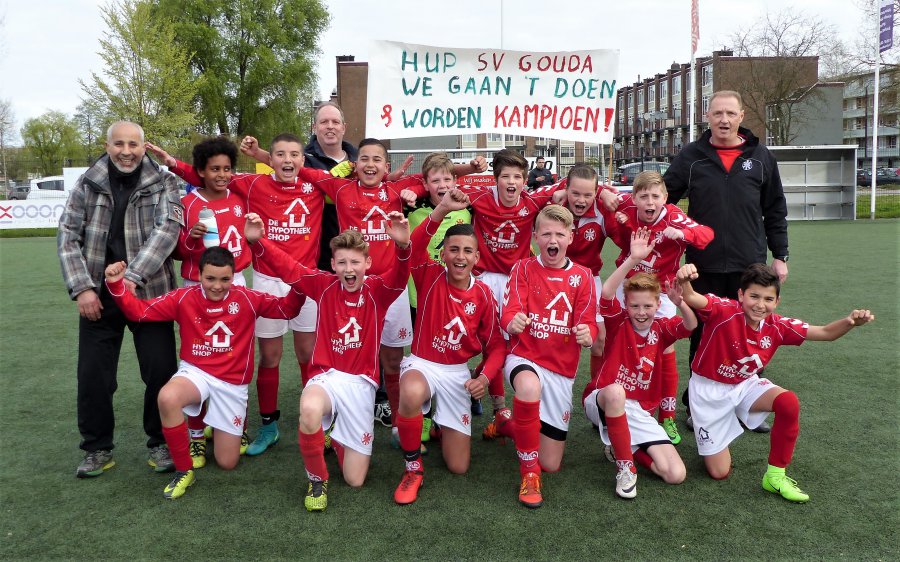 Gouda JO11-2 werd ruim voor afloop van het seizoen op 1 april 2017 kampioen na een 6-0 zege bij Concurrent Moerkapelle JO11-1