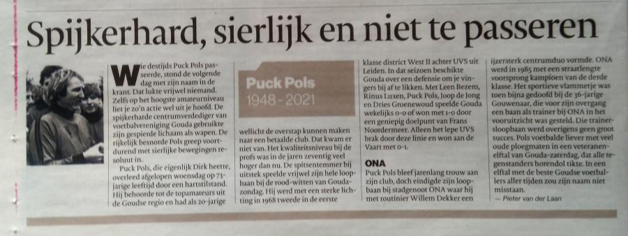 Oud speler Puck Pols woensdag 31 maart 2021 overleden |