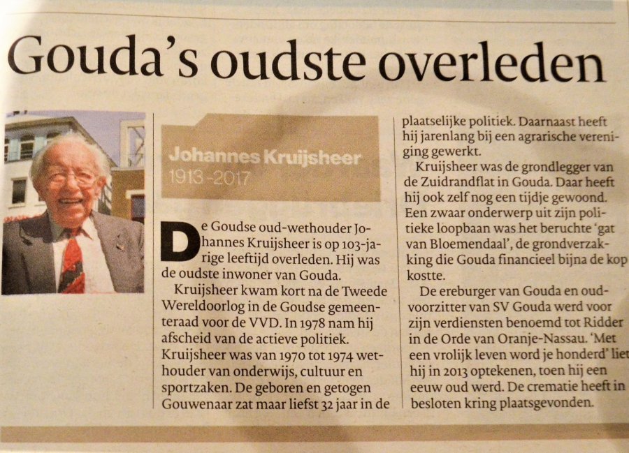 Oud voorzitter en oudste Gouwenaar Kruijsheer overleden |