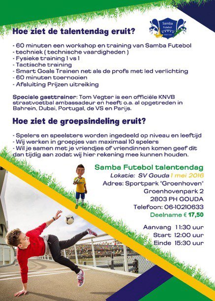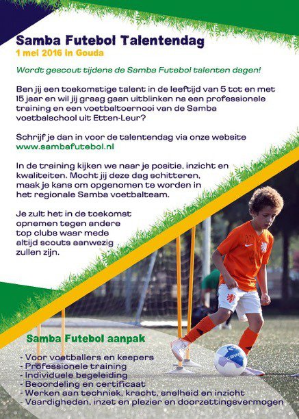 Samba Futebol Talentendag op 1 mei bij de sv Gouda |