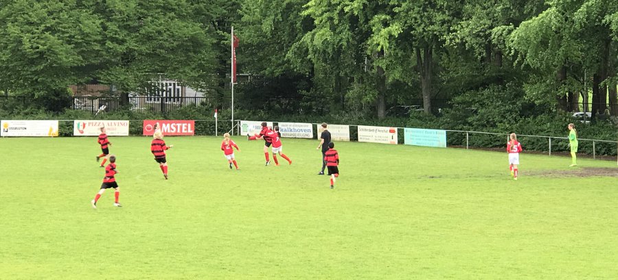 Na de goedverzorgde lunch en het tellen van de punten kon het middagprogramma beginnen. Supporters bleven de teams vol ondersteunen en ook niet-spelende teams deden goed mee. Eén wedstrijd sprong daarbij uit. De meiden van SV Gouda (MO13-1) werden massaal ondersteund bij hun wedstrijd tegen (sportief spelend) stadsgenoot Olympia. Al dan niet hierdoor werd een zwaar bevochten 1-0 overwinning behaald ondanks grote druk van de Olympianen. Grote klasse!