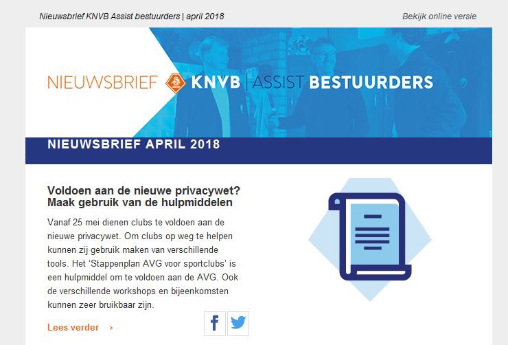 De laatste tijd was er op TV (journaal), krant en internet de nodige aandacht voor de nieuwe Algemene Verordening Gegevensbescherming (AVG), een Europese wet die per 25 mei 2018 de nationale Wet bescherming persoonsgegevens vervangt. Ook voetbalverenigingen krijgen hierdoor meer verplichtingen om op de juiste manier om te gaan met privacy gegevens.