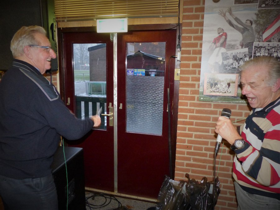 Als allerlaatste wil ik mijn teamgenoot Fred van Reeuwijk, een telg uit een echt Gouda-geslacht, eren voor zijn veertigjarig lidmaatschap. Zelfs nu hij in Tiel woont, draaft hij nog wekelijks op om een balletje mee te trappen bij het Veteranenteam. Fred krijgt het bekende speldje en een mooie bos bloemen.