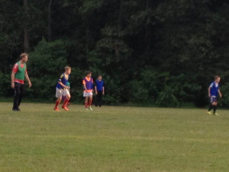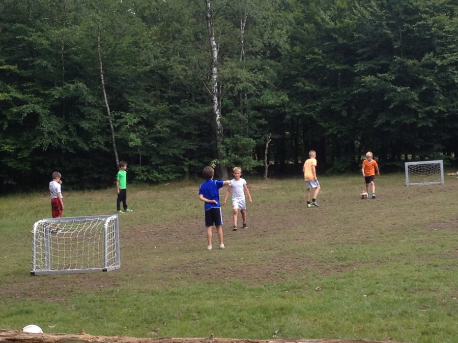 Na het eten werd er gevoetbald en, hoe kan het ook anders, WK wedstrijden gekeken tot het donker genoeg was om het bos in te gaan voor levend Stratego.