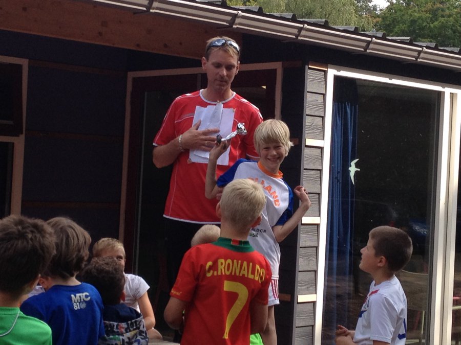 Zondag, de laatste dag alweer, was het inpakken geblazen. Op de heenreis paste alles echt in de tassen maar op de een of andere manier is dat op de terugweg toch lastiger. Na het inpakken ging het richting zwembad waar iedereen zich prima heeft vermaakt. Aan het einde van de middag werd er weer verzameld bij de Specht en zat het er echt op: het zeer geslaagde voetbalkamp van 2014!