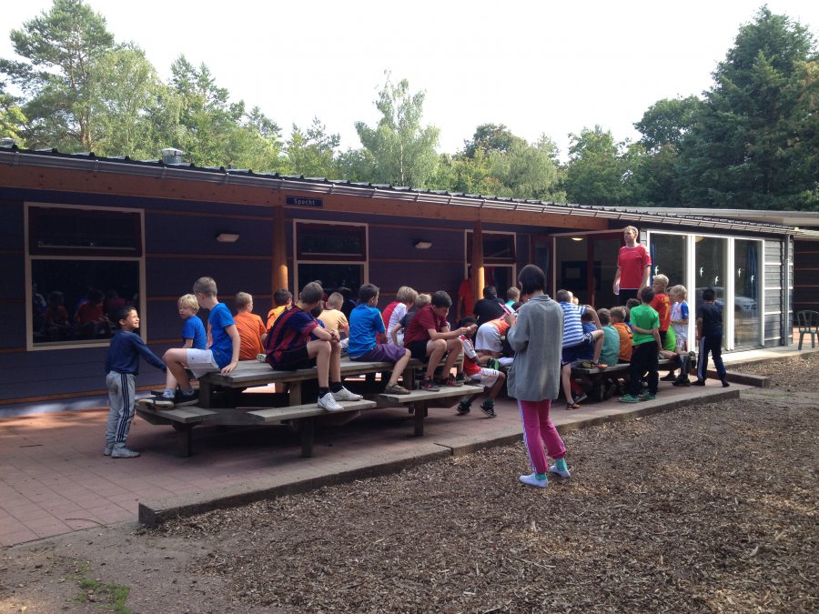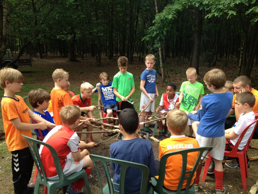 Vrijdag 20 juni was het zo ver: 42 kinderen en 6 begeleiders op weg naar de Specht in Austerlitz voor het jaarlijkse voetbalkamp. Bij aankomst brandde de vuurkorf al en bleken er heel wat jongens chef vuurplaats te zijn. Voetballen is geweldig maar er was in geen velden of wegen een bal te bekennen; 42 jongens op voetbalkamp en helemaal niemand had een bal bij zich. Dan maar fikkie stoken werd er gedacht en er werden heel wat boomstammen uit het bos gesleept om het vuur te laten branden.