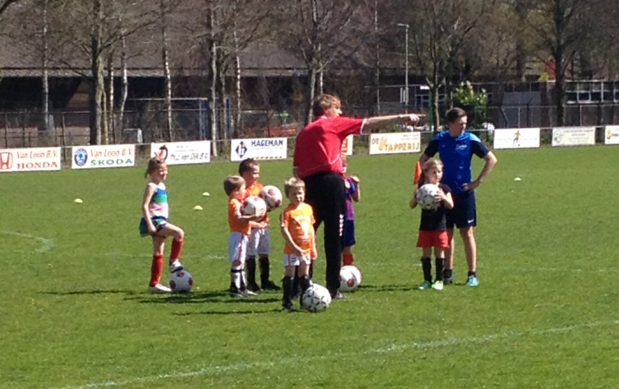 Op 15 april 2015 hebben de deelnemers aan de clinic op een zonovergoten hoofdveld deelgenomen aan de eerste training van de clinic. Vol enthousiasme zijn de spelertjes het veld opgerend en hebben verschillende oefeningen gedaan en natuurlijk ook partijtjes gespeeld. Als je met zo veel plezier aan het voetballen bent duurt een uur training wel erg kort. Inmiddels is de tweede training op 22 april net zo´n succes geweest, maar gelukkig is er op 29 april nog een laatste training van de clinic.
