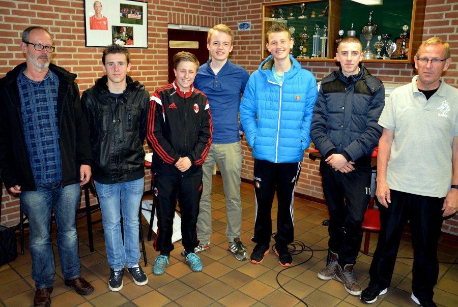 Op donderdag 9 april 2015 werd de BOS-curus in ons clubhuis afgesloten. BOS staat voor "Basis Opleiding (tot) Scheidsrechter" en de cursus werd gegeven door de enthousiaste scheidsrechter Dick Schuit, aanstaande zaterdag spelleider bij de kraker NSV '46 - Siveo. Hij sprak uit dertig jaar ervaring, maar ook vanuit een theoretische achtergrond. Van al het besprokene kregen de cursisten ook een papieren versie mee en dat is maar goed ook, want uit wetenschappelijk onderzoek is gebleken dat van wat de scheidsrechter in het veld zegt, maar 3% blijft hangen! Van het non-verbale daar en tegen ruim 50%, maar dit was natuurlijk geen mime-cursus. Maar alle gekheid op een stokje, het is goed dat zoveel jonge mensen zich met het scheidsrechteren willen bezig houden en zich erin willen bekwamen, goed voor het voetbal, goed voor de club! Overigens meldde de begeleider van Siveo dat zijn club die kraker wel zou gaan winnen, daarmee voor de docent in de praktijk illustrerend welke krachten er op de scheidsrechter losgelaten worden en waar hij/zij zich dan toch niets van aan moet zien te trekken!