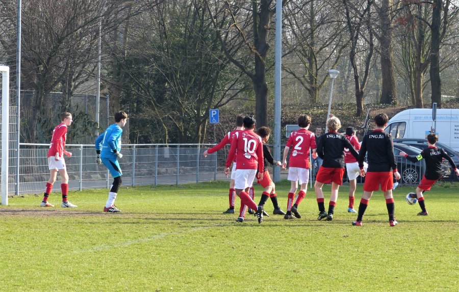 De scheidsrechter was zo sportief onmiddellijk naar het Gouda-veld te komen en met enige vertraging alsnog de wedstrijd te fluiten, waardoor een dertigtal jongens weer hun favoriete sport konden beoefenen. Hulde weer aan onze scheidsrechters, die het elke zaterdag mogelijk maken dat al onze thuisteams hun wedstrijdje kunnen spelen. Gelukkig zat er vandaag wat ruimte in het thuisprogramma, zodat de vertraging geen gevolgen had voor de latere wedstrijden.