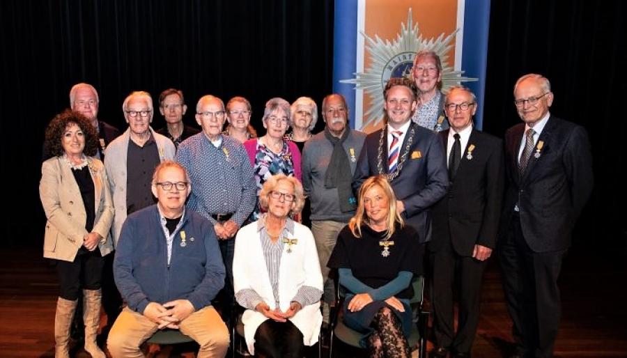 In de Goudse Schouwburg werden aan 15 Gouwenaars en één Reeuwijker de diverse versierselen uitgereikt door Burgemeester Pieter Verhoeve.