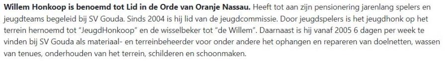 Wij feliciteren Willem met deze welverdiende onderscheiding, een volgende beloning voor zijn jarenlange tomeloze inzet voor de SV Gouda.